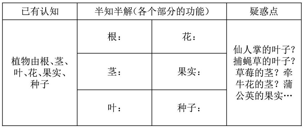 七年级的学生对于介绍周围的陆生植物信心满满,这些植物天天出现在周围,学校、家里、路边都很常见,所以如果要说出几样来,那是轻而易举的事情。但是如果问题进一步深入“这些植物有哪些部位构成”“这些部位的功能是什么?”“所有植物都是长得中规中矩的吗?”很快会有部分同学随着问题的深入而出现疑惑。原来身边这么不经意的小花、小草、小树还有那么多我不知道的知识,从而促发学生的兴趣点,进入本堂课的重点环节。