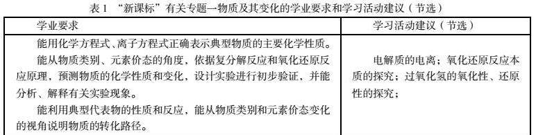 根据“新课标”中主题2:“常见的无机物及其应用”的主题内容要求,细化和解读出本节复习课的课时内容要求和课时学业要求(见表1)