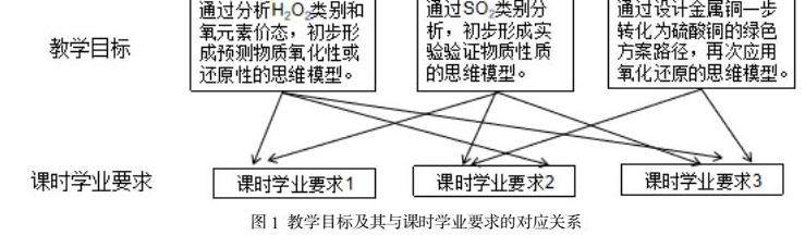 基于上述解读,抽提出本节复习课教学需聚焦的主要教学任务是:如何应用氧化还原反应原理设计实验验证过氧化氢的氧化性和还原性?如何设计探究实验验证SO2的性质?如何设计转化流程实现金属铜一步转化为硫酸铜?结合教学情境创设,与课时学业要求匹配如下:(见图1)