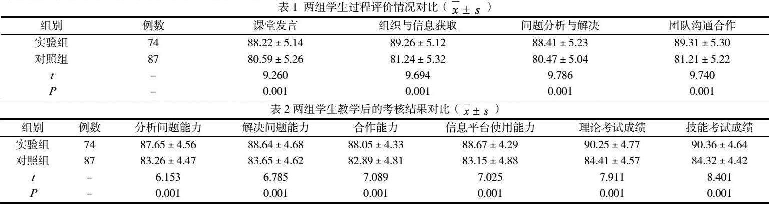 根据数据结果分析可知,实验组教学过程评价评分更高,差异具有统计学意义(P<0.05)。