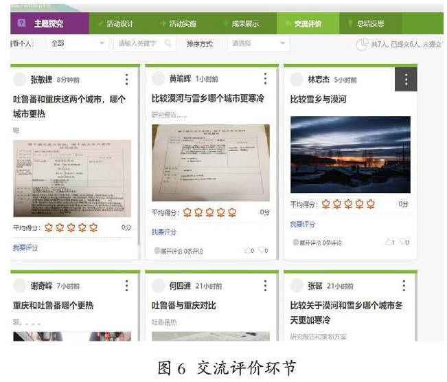 在展示课进入图6交流评价环节后,笔者给几分钟的时间给各团队讨论,交流,进行线上互评,可以给自己小组进行自评、点赞、打分、评论,也可以给其他组的作品进行点赞、打分、评论,最后选出自己最喜欢的作品,从而开拓学生思维。然后老师也在线上点评,给每个小组进行点赞、打分、评论。