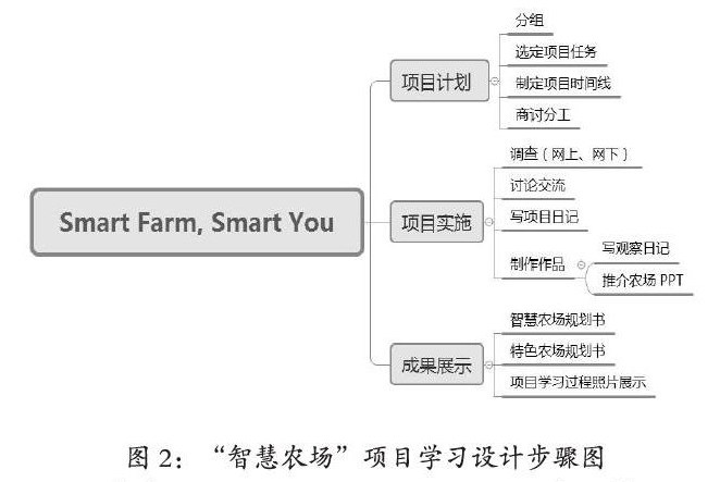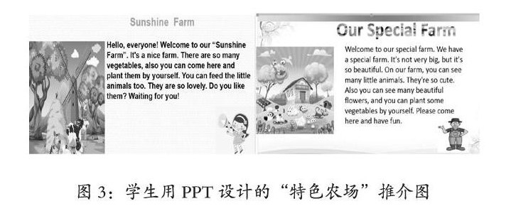 结合Smart Farm,Smart You项目学习设计步骤图,从图2所示可以看出,在整个项目学习过程中,学生是项目学习的主体,他们以小组合作探究的方式,以“规划智慧农场”“推介特色农场”为任务,开展了讨论、调查、规划、制作post card、展览等一系列活动。在项目学习中,我们用任务驱动的方法,让学生不仅在课堂或在课外都要用英语。我们用数据实证:为期六周的“智慧农场”项目中,学生在课堂开展英语学习的时间约为六个小时,但学生利用课外时间上网查找有关四季适宜种植的农作物tomato,potato,green beans,peanut,carrots,strawberry,eggplant,corn,pepper…养殖家禽及小动物需注意的细节以及相关的英语表达方式、观察农作物生长、制作作品等时间累计为8个小时。由此可见,项目学习是以生为本、以生命为本、以人为本的“品质课堂”体现。学生能用各种方式展开活动的、合作的、探究的学习,并能相互表现和共享学习的成果,让学生在探究的过程中真正从知识向能力,能力向素养、从被动提升向主动成长的灵动转化,真正把英语核心素养的育人目标在“品质课堂”绽放。