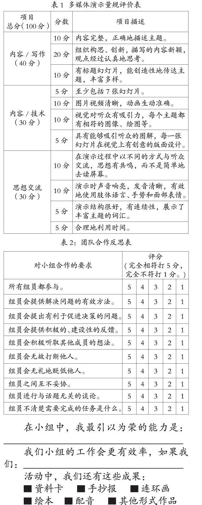 表2:团队合作反思表