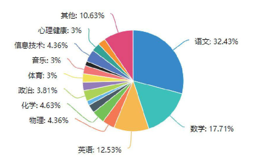 关于现任教的学段:幼儿园占2.18%、小学占26.43%、初中占21.25%、高中占31.34%、中职占16.89%、大学占1.91%。
