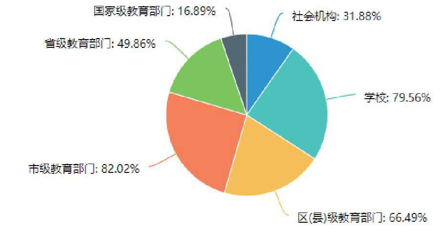 关于所任教的学校:区一级占20.71%、市一级占29.7%、省一级占30.25%、其它占19.35%。