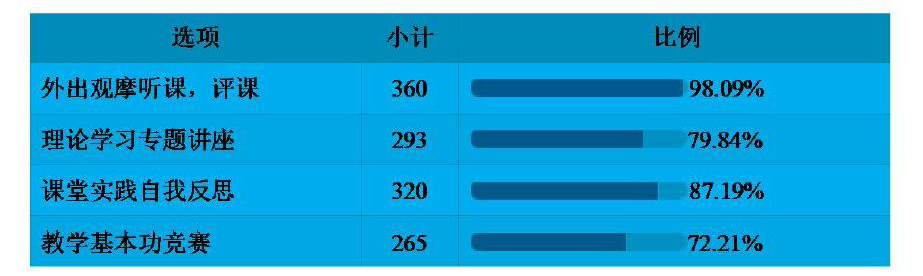 根据“对青年教师专业成长有促进的方式”的数据调查反映: