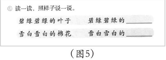 统编版一年级下册第19课《棉花姑娘》中第一次拓展了偏正结构的短语(见图5)。