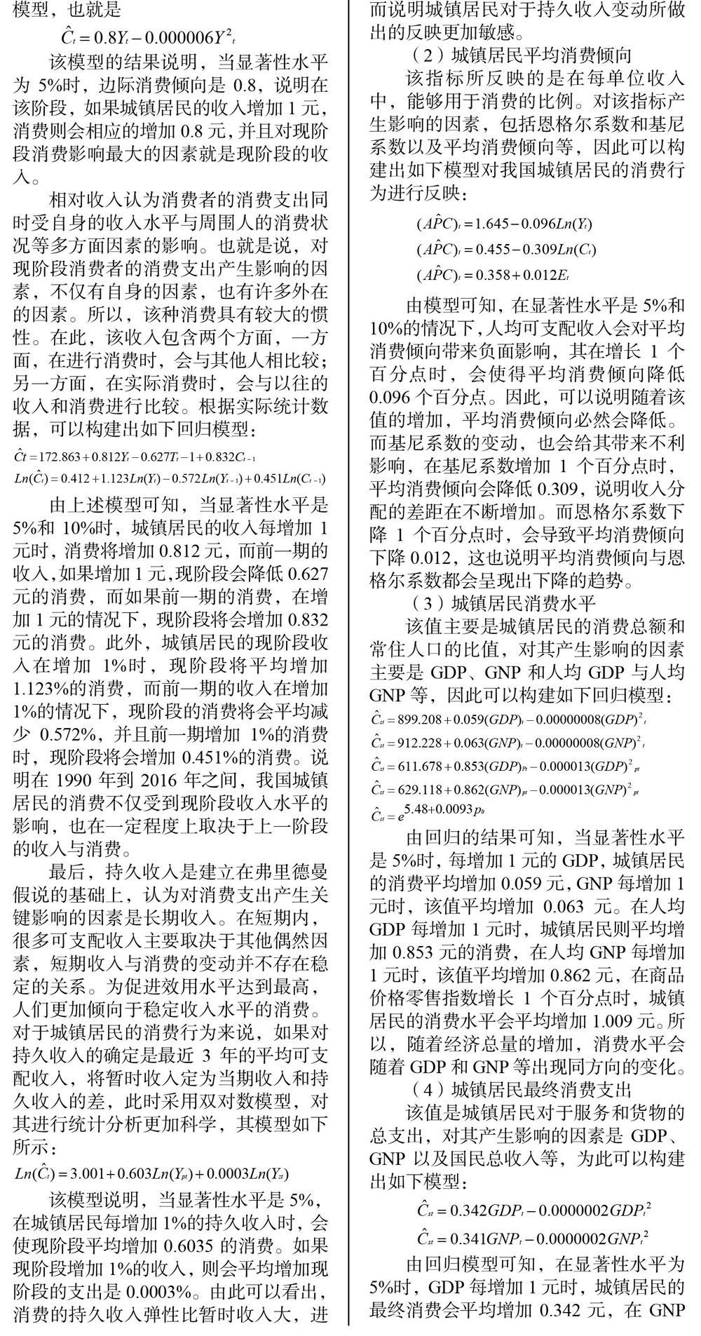 城镇居民 消费行为 回归模型 统计检验