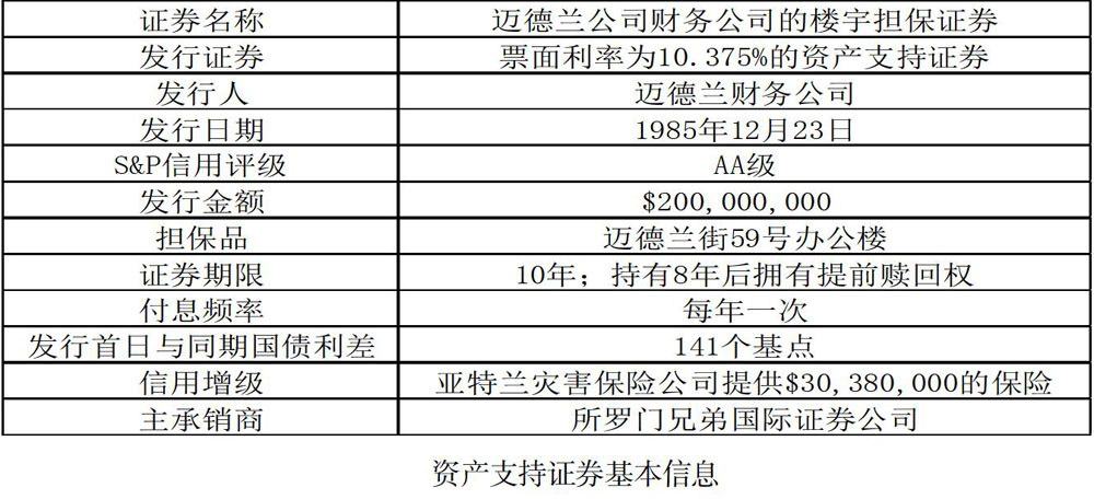 这其中最典型的案例,莫过于1985年奥林匹亚公司以办公楼为抵押物,借助发行资产支持证券方式,以资产证券化的方式融资进行项目融资了。该项目的具体信息如下: