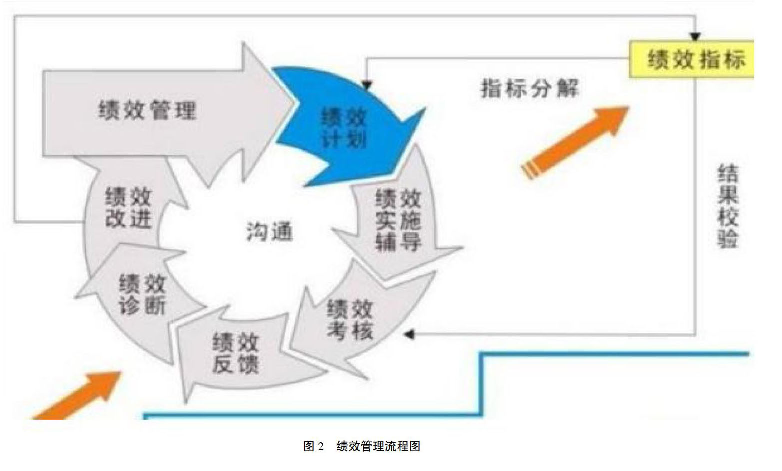 企业在经营管理的过程中还需要制定完善的绩效考核制度,并实行科学的奖优惩劣体系,促使员工可以为企业做出更大的贡献。并且在构建绩效管理的过程中,企业管理者还需要将组织绩效管理理念引入员工绩效评估工作中,使企业内部个人工作绩效的叠加组成可以达到组织的战略目标。如图2所示企业组织绩效管理工作还应当与企业当前的组织战略管理工作相组合,在对员工进行绩效管理的过程中还应当遵循目标导向、分权导向、沟通导向、规范导向等相应的原则,在绩效管理中需注重日常过程的管理,对员工行为加强约束,并灵活的运用多种绩效考核方法,在企业的不同发展阶段实行不同的绩效考核制度,注重绩效考核重点和方法的落实。此外在绩效管理中还需要强调多元化的团队导向管理,注重对企业中的小团队进行绩效考核,同时还需要将信息系统与网络技术等新兴管理技术引入到企业的绩效考核管理中,使企业绩效管理手段更加的先进、考核数据更加准确,并通过构建管理者与下属员工之间互动式的交流平台,必然可以使绩效管理工作和绩效管理行为进一步的客观化和量化管理,有效地帮助企业实现内部的绩效管理工作。