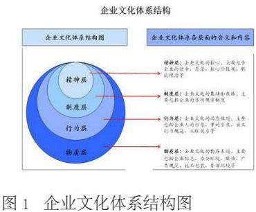 企业文化建设指的是企业将与本企业发展氛围以及价值观等相符合的信仰、行为规范等进行传播和强化,其主要目标是塑造一个积极健康、具有竞争力的组织文化。对于其企业而言企业文化的建设也是塑造企业独特个性和发展特征的过程,通过此过程来提高员工在企业发展中的归属感,增强员工的凝聚力以及对企业发展组织的认同度,让员工之间能够和谐共处、有效沟通,助力企业的可持续发展。企业文化结构包括精神层面、制度层面、行为层面以及物质层面等。(见图1 )在基本要素方面,企业要想进行企业文化建设首先要具备正确的核心价值观,要守诚信、敢创新、保质量。还要要求员工全员参与,广泛征求员工的意见和建议,以员工为中心,让员工能够认可并且参应到企业文化建设的过程中。还要具备完善的奖励机制,通过增强企业文化建设,落实奖惩制度,激发出员工的积极性和创造力。