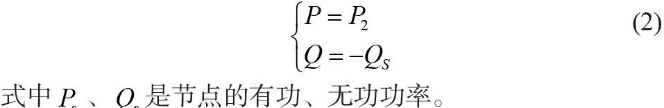 光伏电池等通过电流逆变器接入电网的电源,可以看作电流和注入功率保持恒定的PI节点,相应的无功功率可以根据上依次迭代得到的电压、电流复制和有功功率计算得到,通过下式转换成PQ节点。