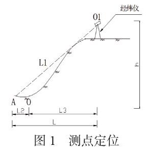 现阶段,输电线路铁塔基础多为矩形不等高类型,包含4个基础腿,各基础腿正面半根开值比侧面大。针对各基础腿进行单独分坑,需加强半对角线和半根开尺寸控制,支模后进行腿间根开尺寸测量,确认能否达到基础设计要求[2]。对待测点O的位置进行预先估计,如图1所示,可以在附近设置参考点A。利用经纬仪进行测量,确保A、O与经纬仪中心O1处于相同垂直面内,然后对A和间的斜距L进行测量,能够确定高差h和水平距L。根据O和O1间的距离L3,能够确定A和O间的距离L2,通过从A点拉平距确定O点位置。在实际测量过程中,将测量仪器放在基础中心桩位置,对下支点混凝土垫墩位置进行测量,完成铰接固定后可以进行闭合测量。将仪器布置在平面45°分角桩位置,按照45°分角线布置插腿和支座,使上外角位于45°线上,可以保证平行活动架中心线。通过调整螺栓改变插腿方向,使仪器仪器中线与平分线重合,能够实施闭合测量。完成各腿找正后,基于最大正差腿操平腿间高差,能够完成闭合测量。完成对中后,对准线路方向设置检测桩A,使水平度盘达到0,向右转45°,沿着照准部视线布置辅助桩M和N,根据基础根开能够确定各辅助桩与中心桩间的路径。分别对准辅助桩测量与水平方向夹角,并利用钢尺测量照准部直线距离,在辅助桩间拉皮尺后能够对桩间距进行测量,确定基础中心桩投影距离,通过悬挂重锤找到基础中心桩位置[3]。