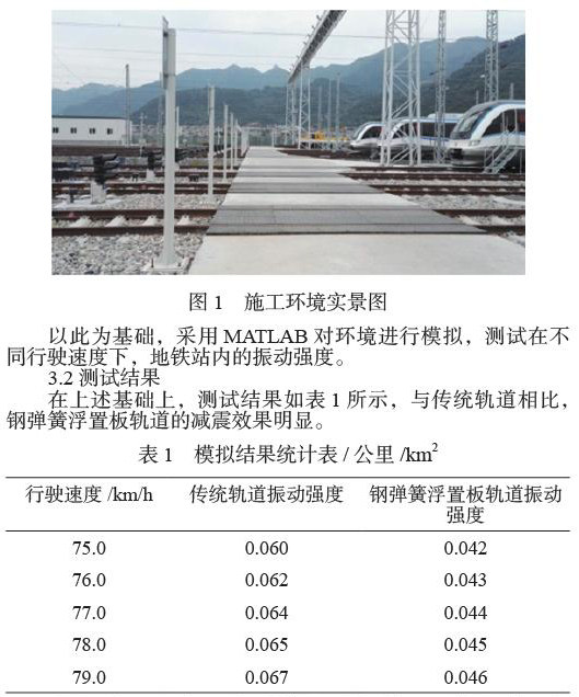 从表1中可以看出,钢弹簧浮置板轨道可以降低地铁运行振动强度0.18公里/km2-0.21公里/km2,作用效果明显,具有实际应用价值。