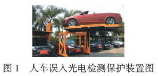 目前,市场当中的一些机械式停车设备,载车板即为停车位,而库门等装置则没有设置(见图1)。处于应用设备停车情况下,倘若别的车辆进行停车操作,可能对前一辆汽车与驾驶人员产生伤害。若基于机械式停车设备当中将人车误入检出装置安装好,那么在上述情况发生的条件下,装置的光电开关则能够对后车给出相应的提示,倘若通过检测显示后车没有暂停,装置便会快速终止停车设备运行,使人员与车辆的安全得到有效保障。