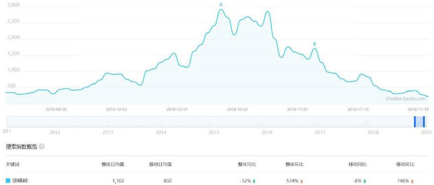 基于指数网站对坡峰岭近一年的网络关注度分析