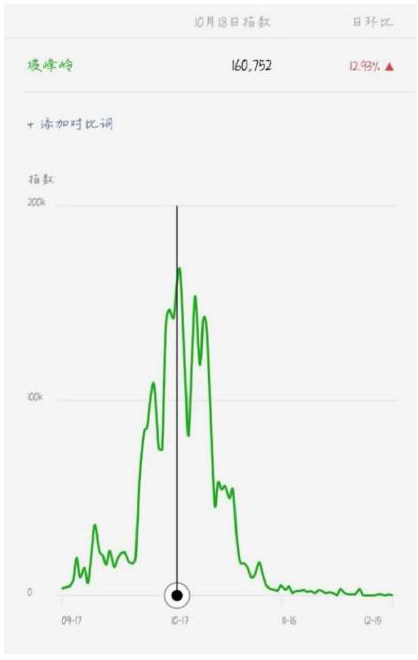 9月17日至11月16日期间微信搜索指数大幅上升,是全年最高时段。10月18日指数达到最高值160752,日环比上升到12.93%。