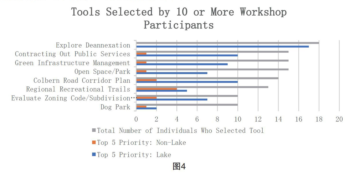 总结所有投票后,被选择最多的是:“探索社区分离的方法”、“公共服务合同外包”、“绿色基础设施管理”、“空地/公园”。