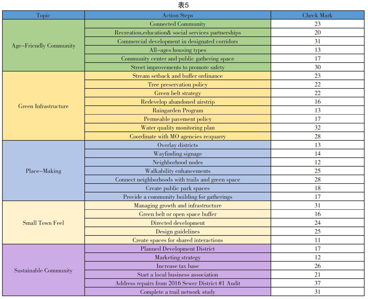 表5右侧是居民的投票数,其中最受欢迎的三项是解决2016年污水系统区域审计会上提出的修理建议;水质监控;改善道路,提高安全性和可行性。