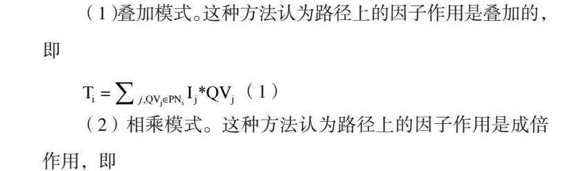设各影响因子归一化后的权重值为Ii(i=1-n,n为影响因子数),Ii对应品质描述因子QV为QVi。计算路径(PNi)的加权值Ti有三种方法: