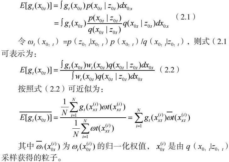 其中为的归一化权值,是由q(x0:t|z0:t)采样获得的粒子。