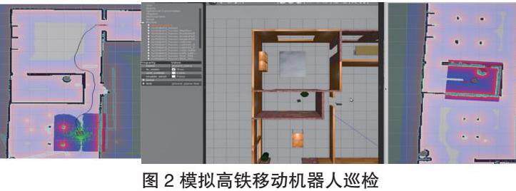 为了验证重采样 PF 算法在高铁移动机器人目标跟踪过程中的有效性,本文实验使用roslaunch turtlebot3_gazebo turtlebot3_house.launch完成程序编写和数值实验来仿真验证,电脑硬件环境为GPU为NVIDIA GeForce GTX 1650Ti、CUDA版本为10.1。 对高铁移动机器人目标的随机行走过程及定位估计进行仿真使用2D Nav Goal设定小车目标地点,规划路径,自动运行到目标位置,实现自主导航功能。