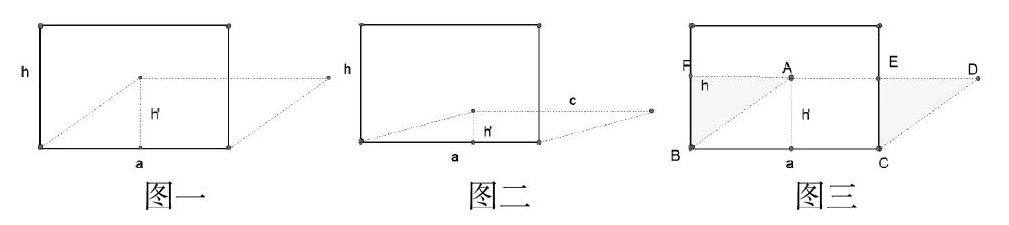 在我和同学们沉浸在这个同学的方法时,一个同学低头在练习本上画着什么?这位同学平时最爱思考,我想再等等,再问问还有同学有没有其他方法。我话刚落音,那位同学就很自信的举起手,说有点想法,想与大家分享一下。我趁机说:“只要你有想法,哪怕你是不成熟的想法都很了不起的。老师相信你。”该学生用草图画出了他的想法,即用切补的方法来证明面积变小啦。下面详细讲解一下:(图三)