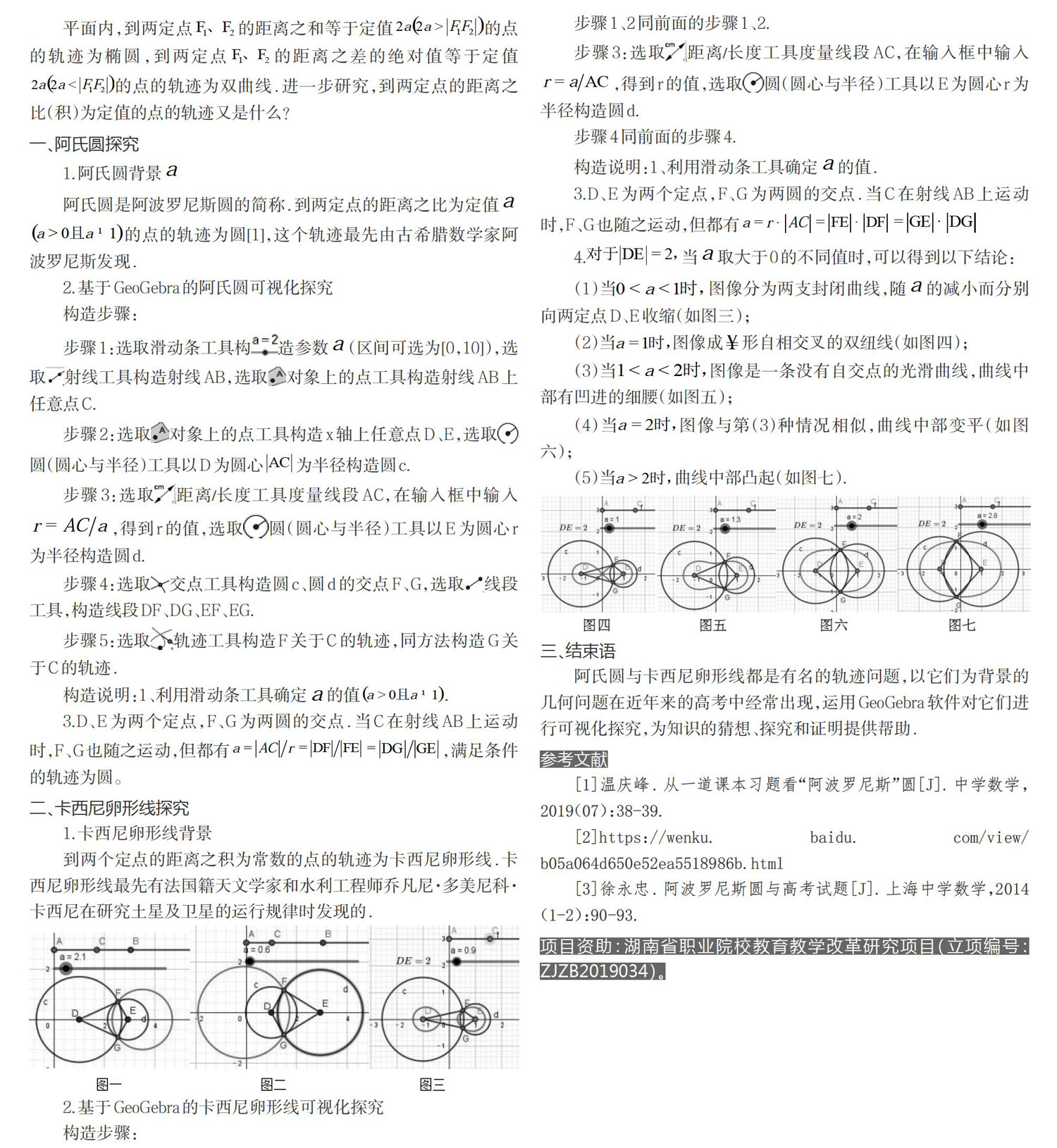 关键词:GeoGebra;阿氏圆;卡西尼卵形线;可视化