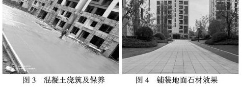 结构完成4d后,所浇筑的基础结构达到了一定的强度等级,根据施工进度要求可以允许进行面层铺装施工。按照设计图纸的拼图案效果进行施工排版铺贴地面石材,注意控制好排水方向的坡度,和结合层砂浆的配合比必须拌制均匀,先试铺样板段让业主方进行确认后,再进行大面积展开;在铺贴石材时最关键的工序就是铺设几平方后就要及时扫缝(根据甲方的要求决定是否扫缝处理),和湿水,要让结合层砂浆与其石材、地面有效结合粘粘牢固,使其干硬性砂浆及时完成水化作用,规避泛碱和返修的质量通病能产生,确保硬质景观的综合效果,要求专业工程师实时旁站、跟踪、监督管理,执行浙江省、市验收规范的要求[2]。