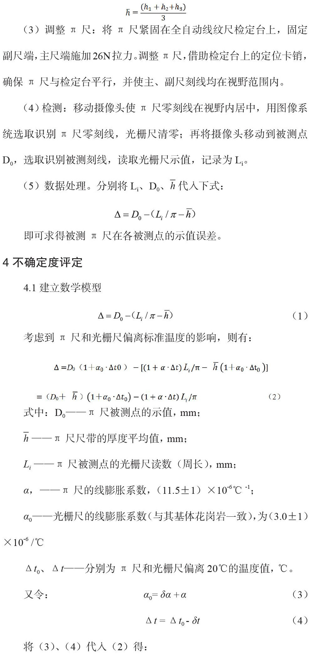考虑到π尺和光栅尺偏离标准温度的影响,则有:
