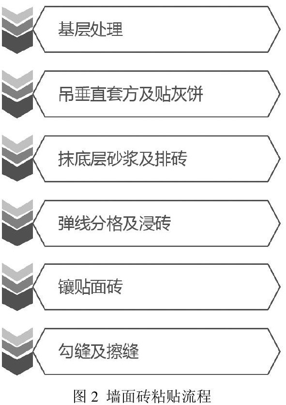 在注重地面饰面施工的基础上,技术人员应加强对卫生间、茶水间墙面砖粘贴的控制。墙面砖粘贴流程如下: