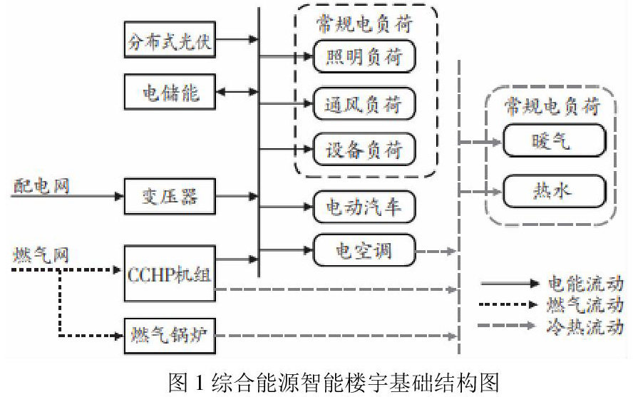 综合能源建设系统是以用户为中心的终端多能源系统,规模小,是在实现内部能源和多源负载资源,灵活协调和交互是重要的研究方向之一。根据综合培训建筑的电源配置,系统运行时间表和电源管理战略不仅可以降低建筑的能源成本,还可以有效地促进客户分布式能源的使用。综合能源信息建筑的基础设施如图1所示。如图1所示,供电侧的电力系统(例如CCP、光伏、储能等)。页面:1 .建筑包括电力、天然气、制冷(热)和其他形式的能源。为了与客户负荷(空调系统、热水系统、照明系统、办公设备能源系统等)一起,通过系统内的能源转换设备形成综合智能能源建设系统。