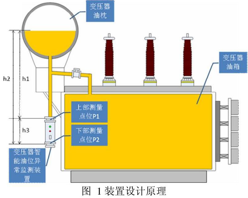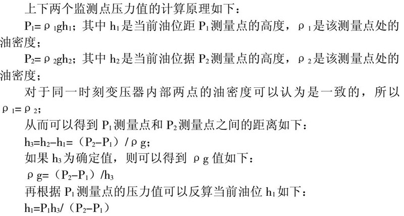 压力传感器广泛应用在液体高度测量上,通过对液体压力值的测量和换算可得出液体高度。在变压器储油柜中,储油柜底部通常会连接一条放油管进行放油操作。本文通过在放油管末端安装双点差压式变压器智能油位异常监测装置,通过二点压力差分算法计算得出储油柜油位高度。