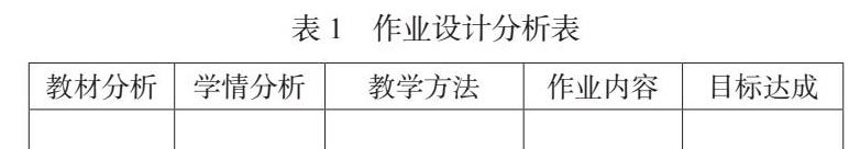 教师在设计作业时,必须以单元为目标对作业进行整体设计,形成作业单元目标。根据新课表,具体要求为:单元目标符合学科课程标准及教学基本要求,题目的实际要求与单元目标相关联,单元目标的覆盖比例合理。同时,教师要兼顾学生、教学设计,做到教学内容、学生情况、教学方法三结合进行作业设计作业设计分析表(表1)