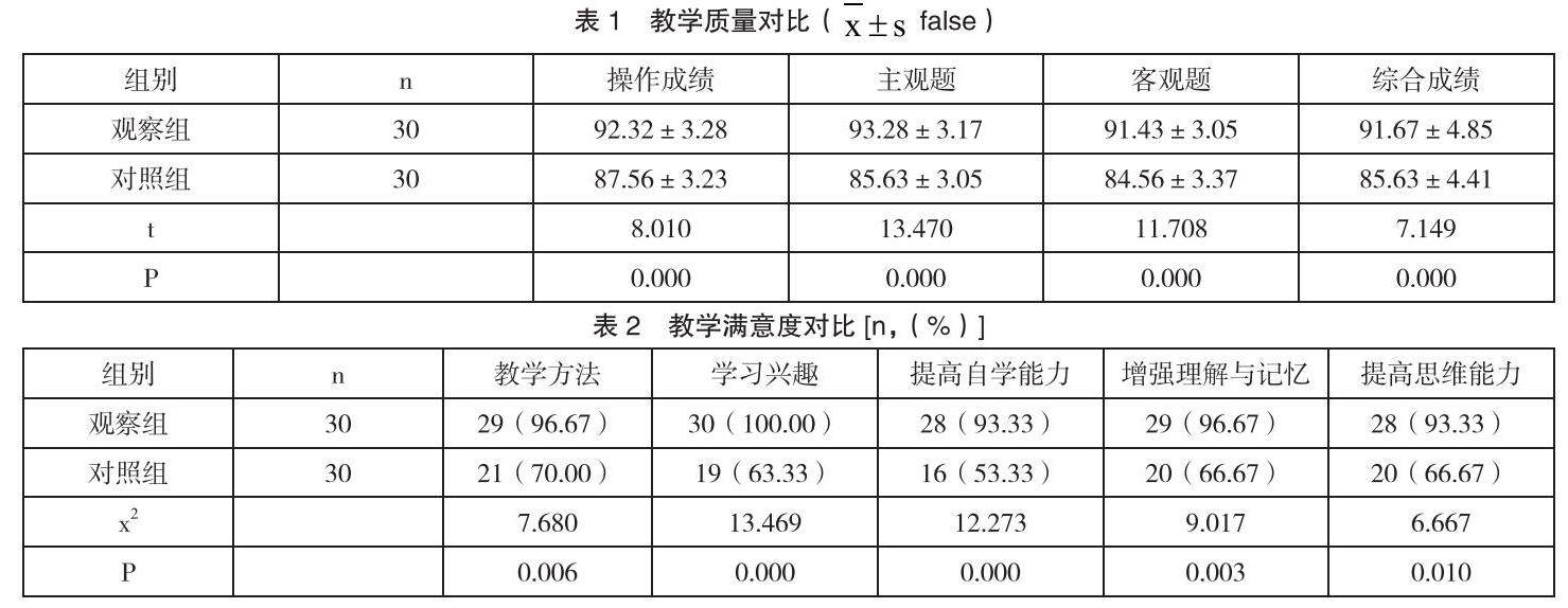 观察组学员教学质量显著高于对照组,(P<0.05),见表1。