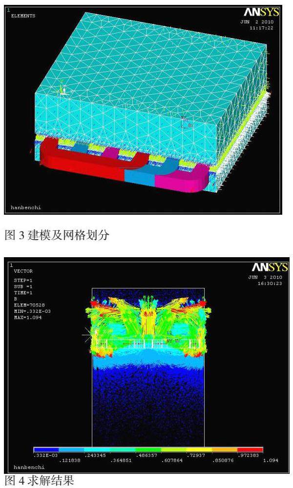 3、永磁体:材料为钴钐合金,相对磁导率 µr3 =1.1,矫顽力H c =750 kA/m