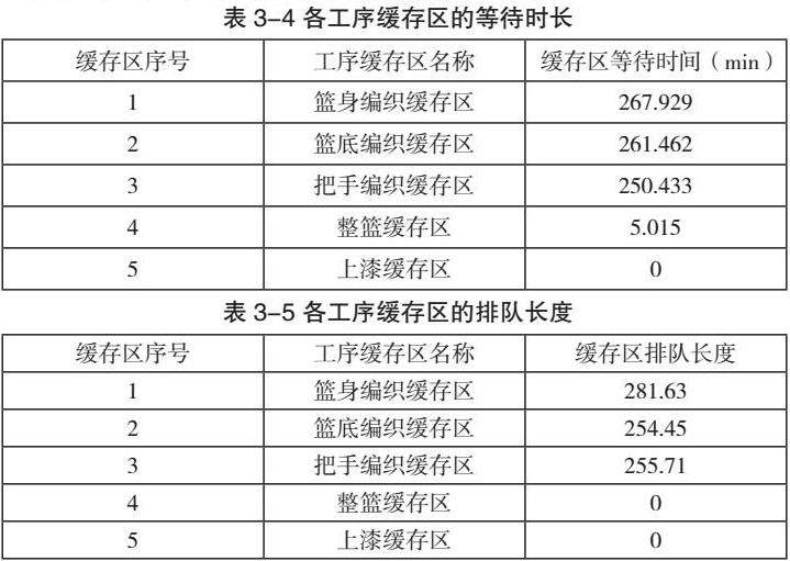 ②在初始原料进入时,原材料进入过快,导致篮身编织缓存区、篮底编织缓存区和把手编织缓存区排队时长过长,严重占用生产空间和资源。