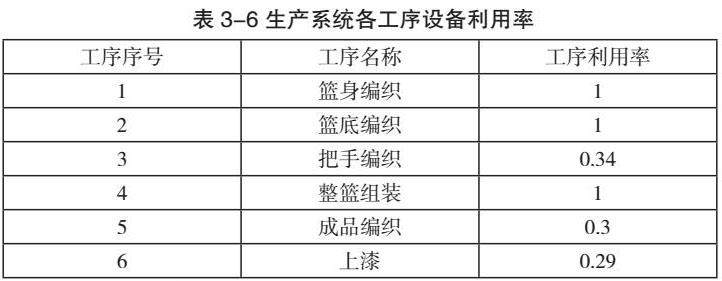 生产设备的利用率也是影响生产系统产能的重要因素之一,本文研究的生产线为半纯手工生产线,仅由人工生产,故本文中将人员视为设备,设备利用率及人员工作效率。生产系统中各个环节的设备利用率如下表3-6所示: