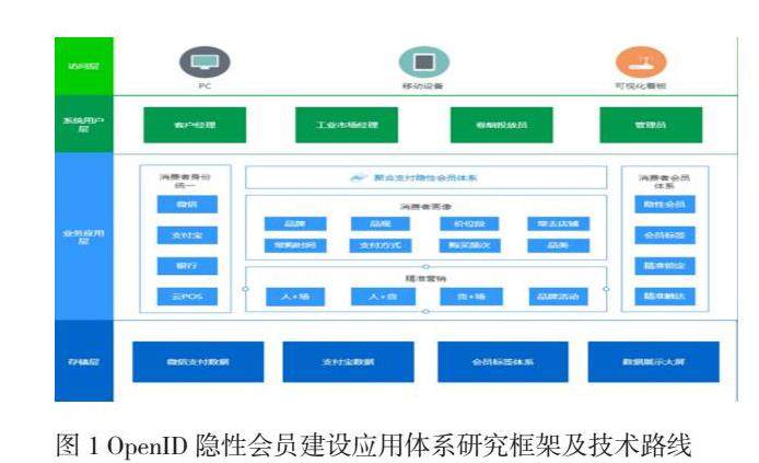 OpenID身份认证主要确保用户在不同零售终端间能够具有统一的身份标识码。在消费者无感知的条件下,将不同身份识别码归集为一个OpenID,实现消费者身份识别码的统一。即消费者无需使用会员卡或填报手机号,通过支付行为即可实现交易信息和会员身份的关联。通过消费者OpenID身份的统一,可以准确跟踪和研判消费者购买行为,即建立可应用的隐性会员体系,为消费行为分析与应用提高可靠的数据基础。