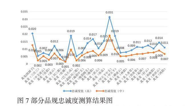 本研究通过前馈神经网络计算得出会员对于不同品规卷烟的忠诚度,选取忠诚度“前第10%数值”和“忠诚度前第20%数值”为忠诚度值(高)和忠诚度值(中)的标准,当会员对某品规卷烟品牌忠诚度值高于忠诚度值(高),则可认为该会员对于该品规的品牌忠诚度为“高”;当会员对某品规卷烟品牌忠诚度值介于忠诚度值(高)和忠诚度值(中)之间时,则可认为该会员对于该品规的品牌忠诚度为“一般”;当会员对某品规卷烟品牌忠诚度值低于忠诚度值(中),则可认为该会员对于该品规的品牌忠诚度为“低”。