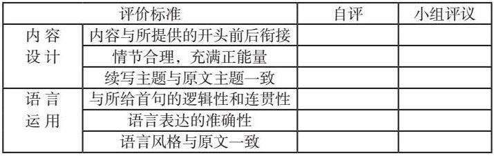 教师引导学生根据写作评价表对自己的读后写作进行自评和同伴互评,在观察中引导学生自主发现问题和分析问题,让学生实现自主学习。评分细则表格如下:
