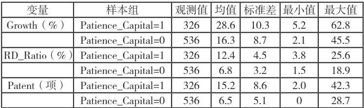 本实证分析选取 2010-2023 年长三角、珠三角、京津冀三大创新创业活跃区,获不同类型资本支持的 1200 家创新型企业作为研究样本。数据来源于:一是清科中心等投资数据库,获取企业获得耐心资本(长期基金、私募股权等)及短期资本(传统风投、天使投资等)的金额、投资周期等信息;二是工商注册信息、年度财务报告,收集企业的营收增长率、研发投入占比、专利数量等经营与创新指标;三是协会报告、公司公告及政府统计数据。为确保样本有效性,对数据进行筛选:剔除经营年限不足 3 年、关键财务指标缺失的企业,最终保留 862 家有效样本,其中获得耐心资本的企业 326 家,仅获得短期资本支持的企业536 家。