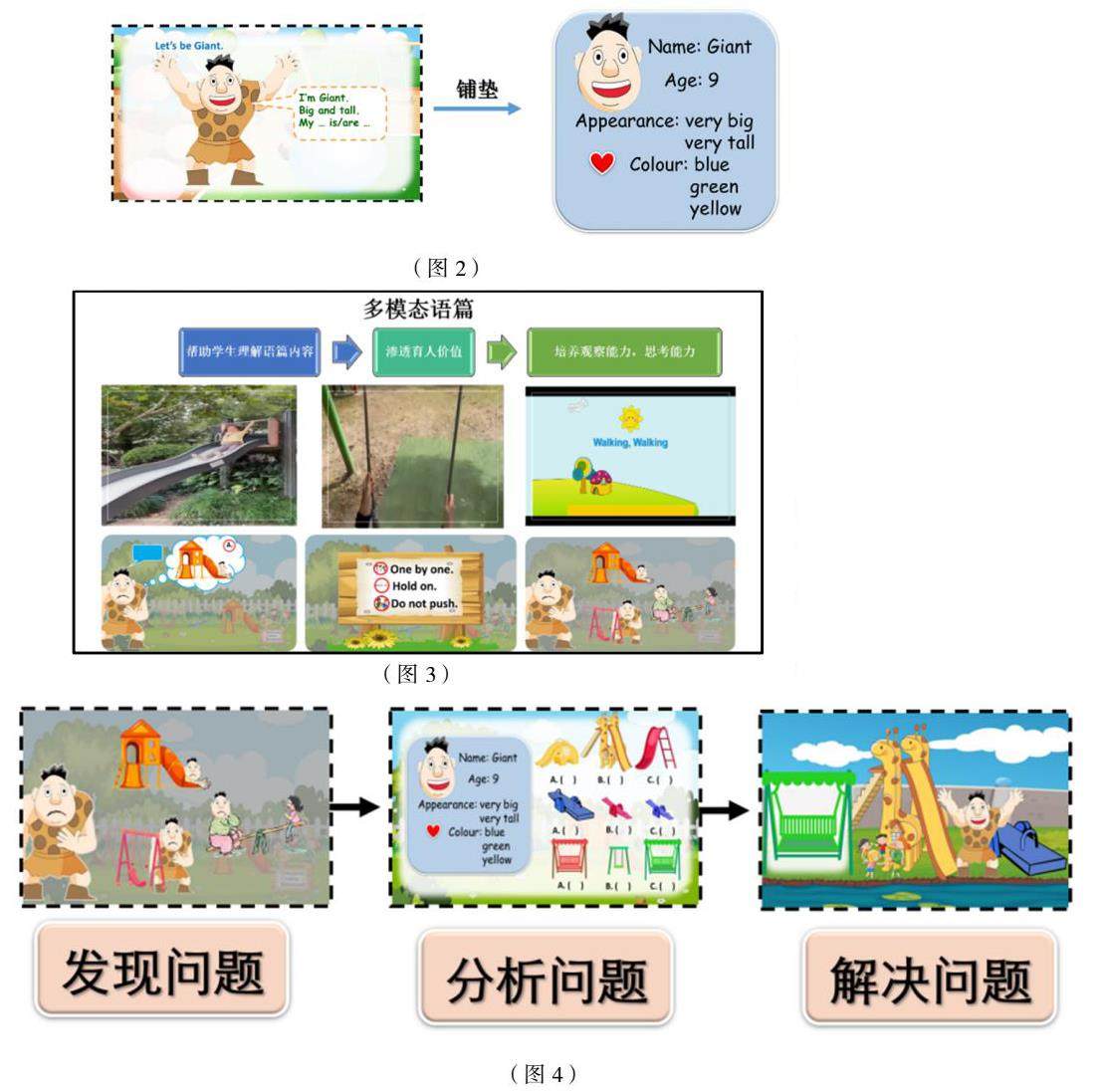 同时,通过跟读、朗读、儿歌、游戏、问答、角色扮演等环节,结合故事,层层推进,在情境中深刻理解并掌握核心词汇,进行语段输出;同时让学生沉浸式感受和猜测人物Giant不喜欢这些游乐设施的原因,为之后学生演绎做铺垫。在《课标》中提出:“就语用知识而言,要帮助学生树立语境意识,在语言交际中关注时间、地点、场合、交际对象、人物关系、心情处境和交际目的等因素。在输出活动中,注意创设真实的、与问题解决紧密关联的语境”,本课时创设的真实语言情境可以极大地调动学生学习的积极性,激发学习内隐力,有效提高学生的语言综合运用能力。