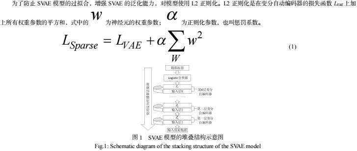 为了防止SVAE模型的过拟合,增强SVAE的泛化能力,对模型使用L2正则化。L2正则化是在变分自动编码器的损失函数LVAE上加上所有权重参数的平方和,式中的为神经元的权重参数;为正则化参数,也叫惩罚系数。