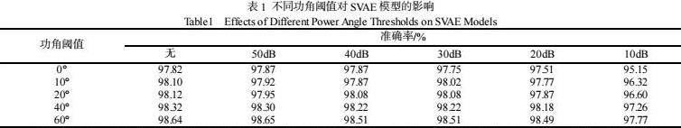 从表1中可知,纵向观察每一列的数据,在不同的噪声干扰下,随着功角阈值增大,SVAE模型的判别准确率在逐步上升。表1证明功角阈值的设置对提高模型判别准确率有益,且功角阈值设置越大,判断准确率会越高。