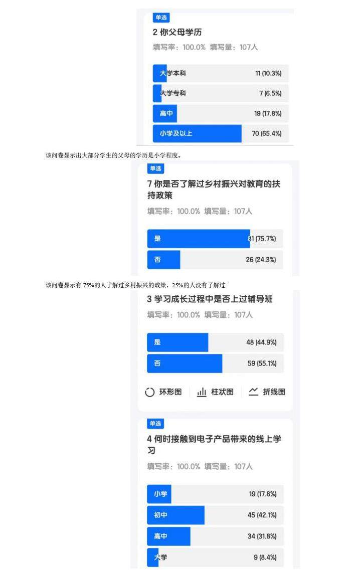 该问卷显示出大部分学生的父母的学历是小学程度。