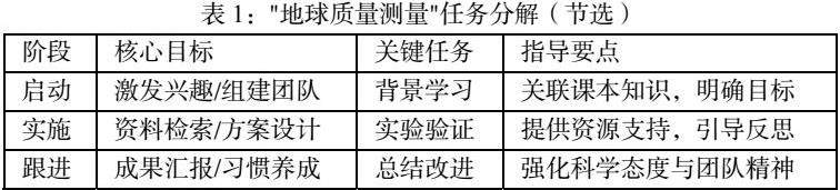 初阶项目: 校内"揭榜领题"活动(如"地球质量测量"),通过趣味性任务培养基础实践能力;