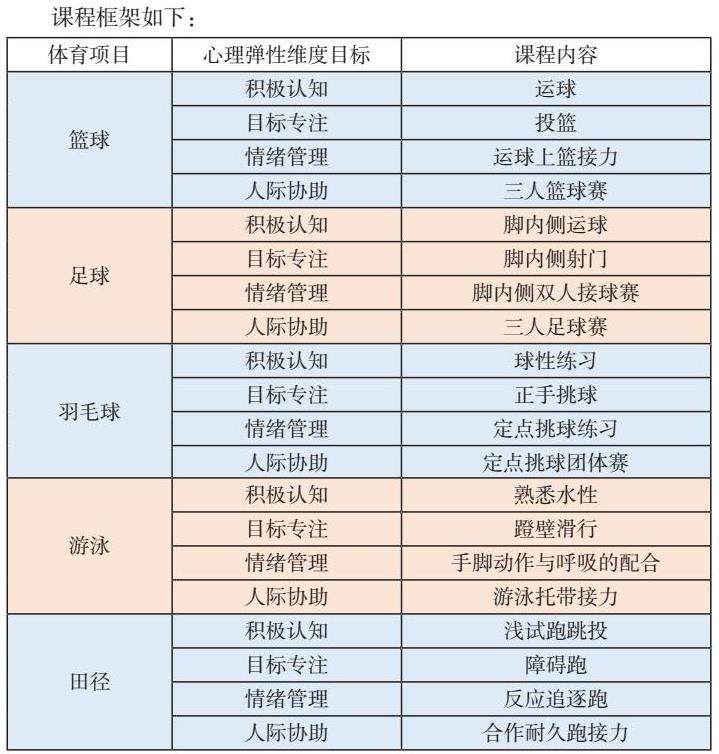 2.2 基于提升初中生心理弹性的体育课程框架