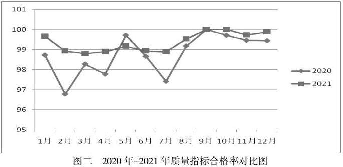 2021年1-12月份氯乙烯装置工艺指标合格率平均98.62%,较2020年同期合格率98.23%提升了0.39个百分点。随着工艺指标的优化控制与精益管理提升,氯乙烯单体质量合格率1-12月份稳定在99.24%以上,较2020年同期98.70%上升0.54%,充分保障了下游原料的供应质量合格率。(见图二)