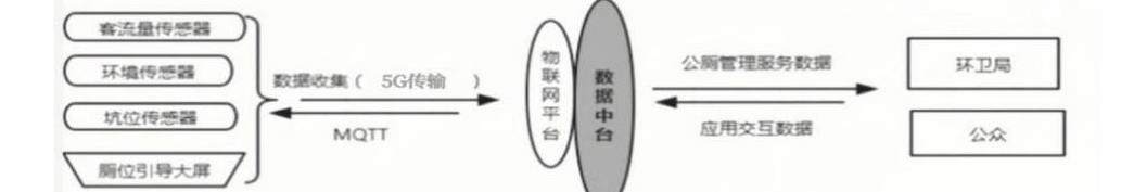 在BIM设计中需要考虑综合布线的合理性和成本,确保各部分传感器、传输通道、系统集成链接正常无误。主要传感器有客流量传感器、环境传感器、坑位传感器等,其中环境传感器包括温度、湿度、空气、红外等传感器。厕位引导大屏会显示坑位状态、空气质量、当地天气、设备维修、用户反馈。利用5G传输给物理网平台,各设点数据中心将服务数据可传输至环卫局,方便管理和维护。